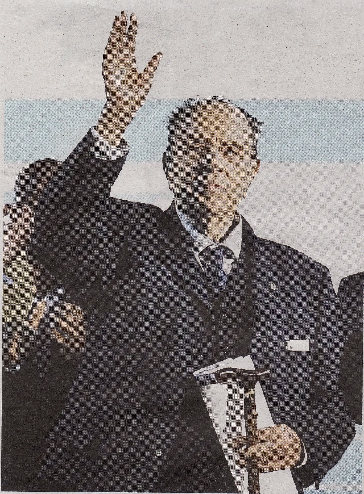 Para nosotros los del P.P. y creo que para la mayoría de los españoles, Don Manuel, no hay más que uno. Don Manuel Fraga Iribarne. Don Manuel que acaba de decir adiós a la política activa a la que ha dedicado más de sesenta años de los noventa, que cumplirá el 23 del próximo noviembre. Supongo que habrá seguido consejos de su hija Carmen en su doble papel de hija y médico. Si es verdad que sus piernas o su cadera le fallan, su cabeza sigue funcionando como siempre. Una cabeza en la que cabe el Estado,según se ha dicho en repetidas ocasiones.